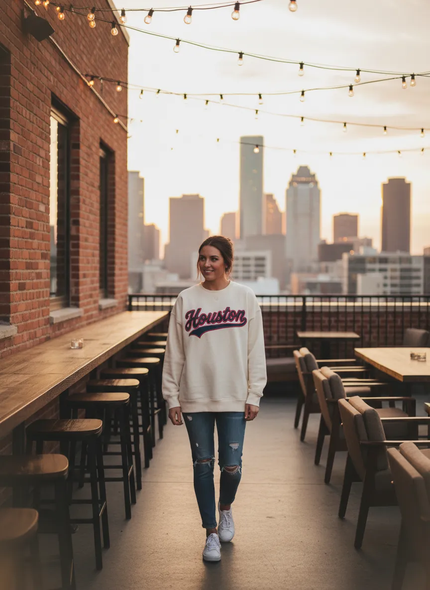 Nothing beats the comfort of a worn in vintage graphic tee. Find a shirt with an old school Houston logo and wear it with some cutoff denim shorts. This gives you a really casual and effortless energy.