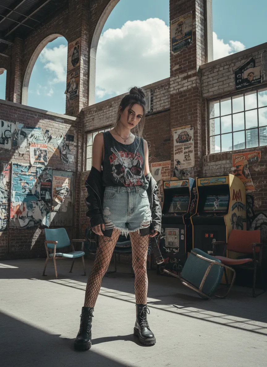 A muscle tank with a distressed team logo gives off a cool rocker vibe. Let a brightly colored bralette peek out from the loose armholes. Pair it with black denim shorts and some edgy black boots. This outfit is perfect for those really hot summer afternoons at the ballpark.