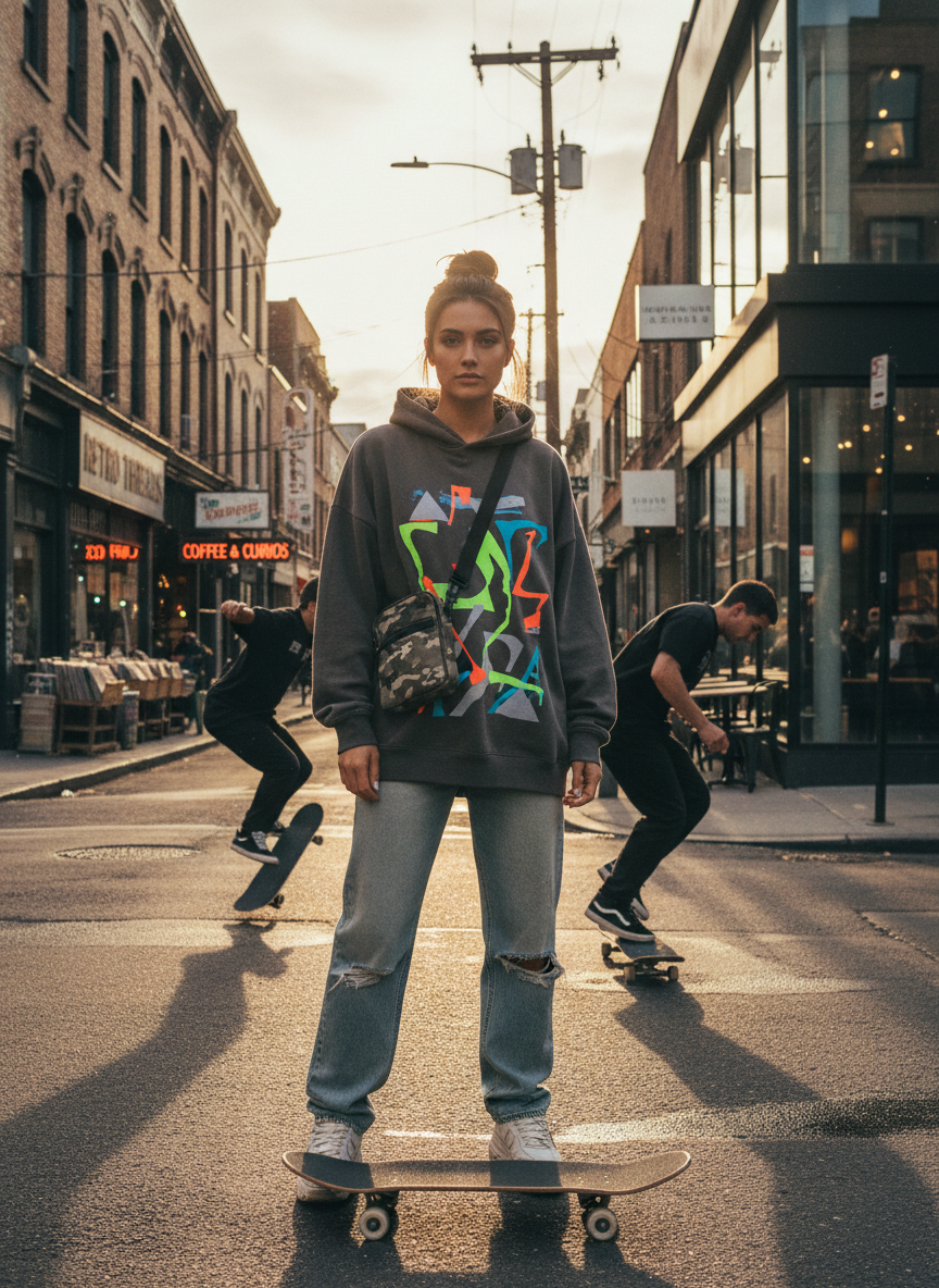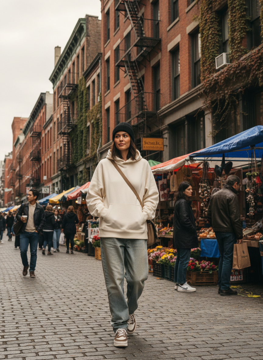 Embrace the full comfort mode by throwing on a massive hoodie. This look screams cozy vibes and keeps you warm on chilly days. You might think it looks bulky but it actually creates a really cool streetwear silhouette. Just make sure your sneakers are chunky too.