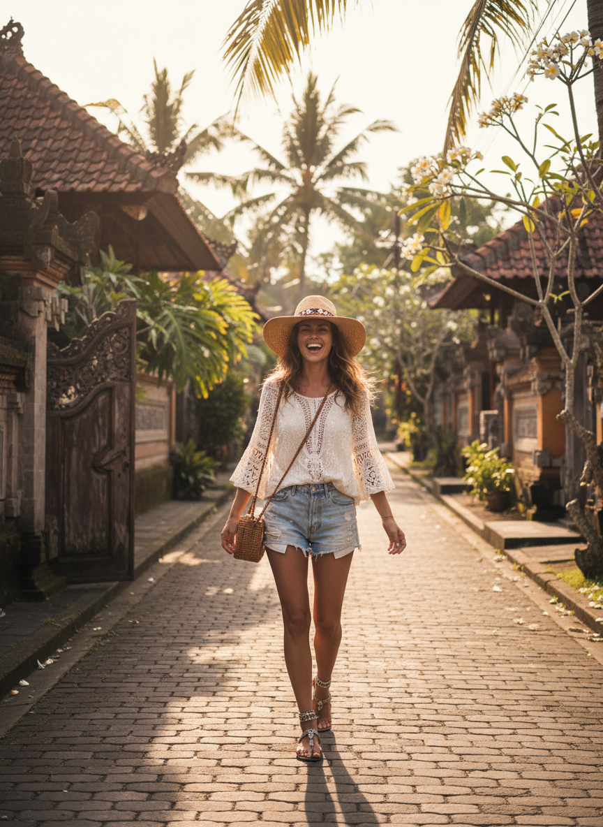 Getting ready for a trip to paradise is seriously the best feeling ever. You are probably daydreaming about coconut bowls and sunset swims already. Packing for this tropical getaway can be tricky because of the humidity and the endless activities. You need fits that look cute on a scooter but also work for a nice dinner in Canggu.