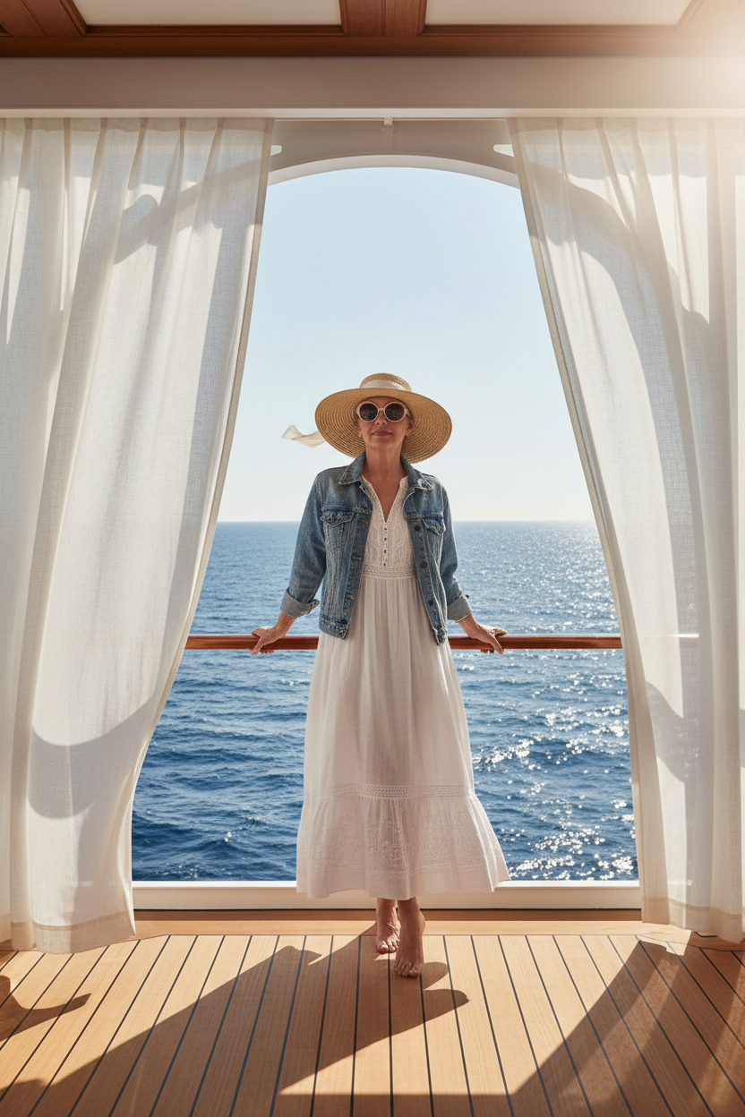 Throwing a light denim jacket over a sundress is very practical. It helps when the breeze gets a little chilly on the deck. This layer adds a cool and youthful touch to your style. It is a great piece to have for travel days.
