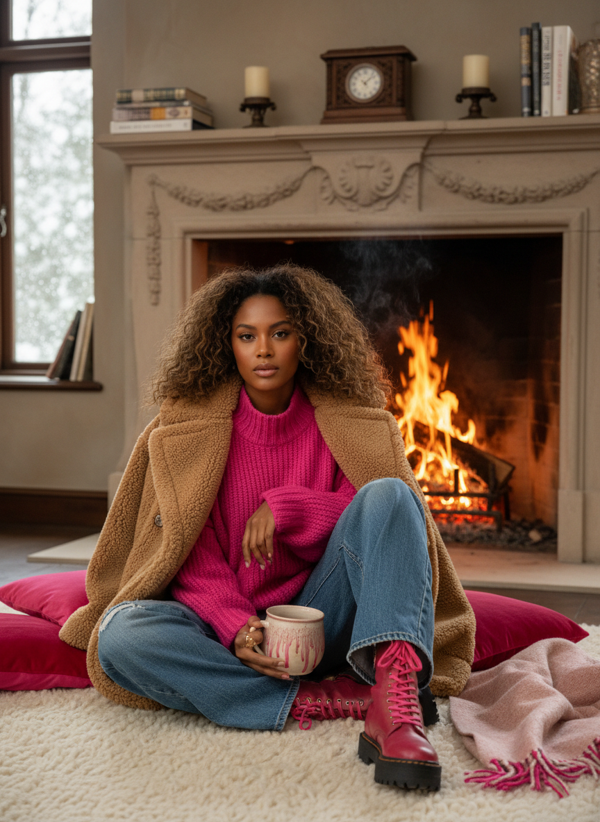 It creates a heavy bottom look that balances out an oversized sweatshirt. This is definitely one of the coziest 15 Trendy Black Girl Winter Outfit Ideas to Try in 2025–2026.