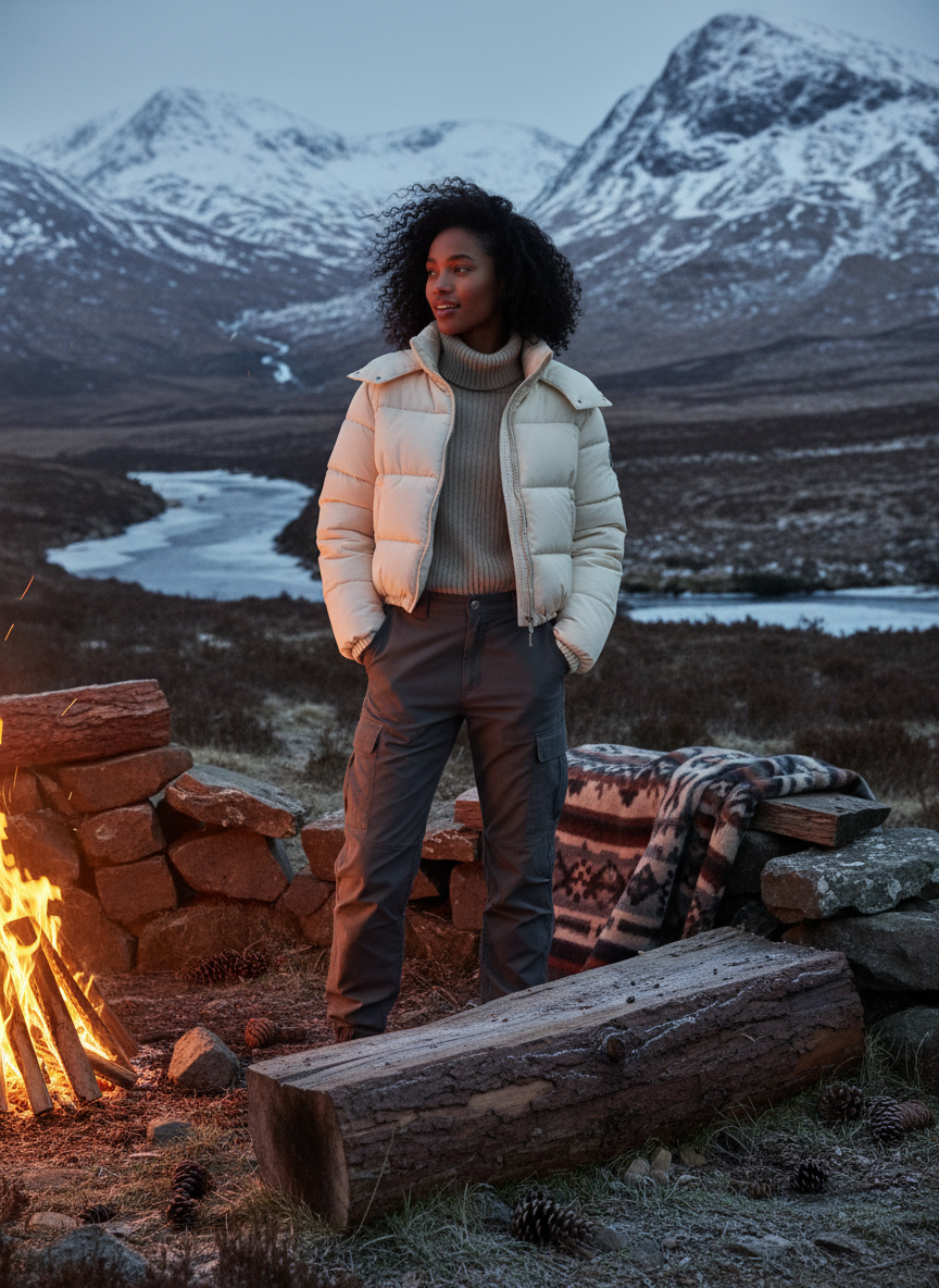 Cargo pants are great because the heavy fabric blocks the wind. Style loose cargo pants with a cropped puffer jacket to highlight your waist. This plays with proportions and keeps the look modern.