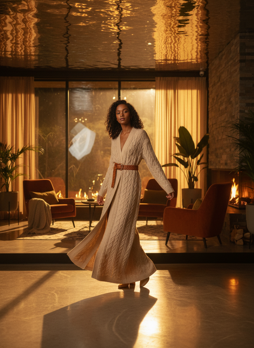 A knitted sweater dress is the easiest way to look cute with zero effort. Choose a midi length dress in a deep burgundy or olive green color. Pair it with black knee-high boots to keep your legs warm and add some drama. You can belt the waist if you want to show off your shape. It is one of the best 15 Trendy Black Girl Winter Outfit Ideas to Try in 2025–2026 for date night.