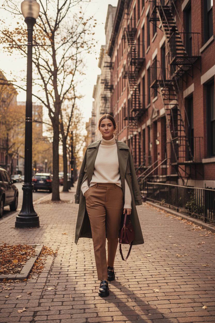 A light trench coat is the ultimate layer. It makes even the simplest outfit look expensive. You can wear it over leggings and a nice sweater if you are in a rush.