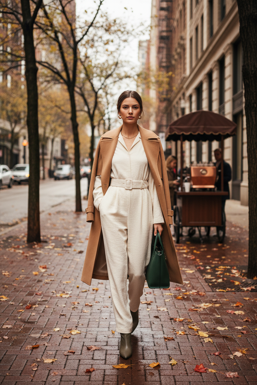 Jumpsuits are a one and done outfit. A belted version cinches your waist while the rest of the fabric stays loose and flowy. It is easy to move in and looks very modern. This is a great pick for those days when you do not want to match a top and bottom.