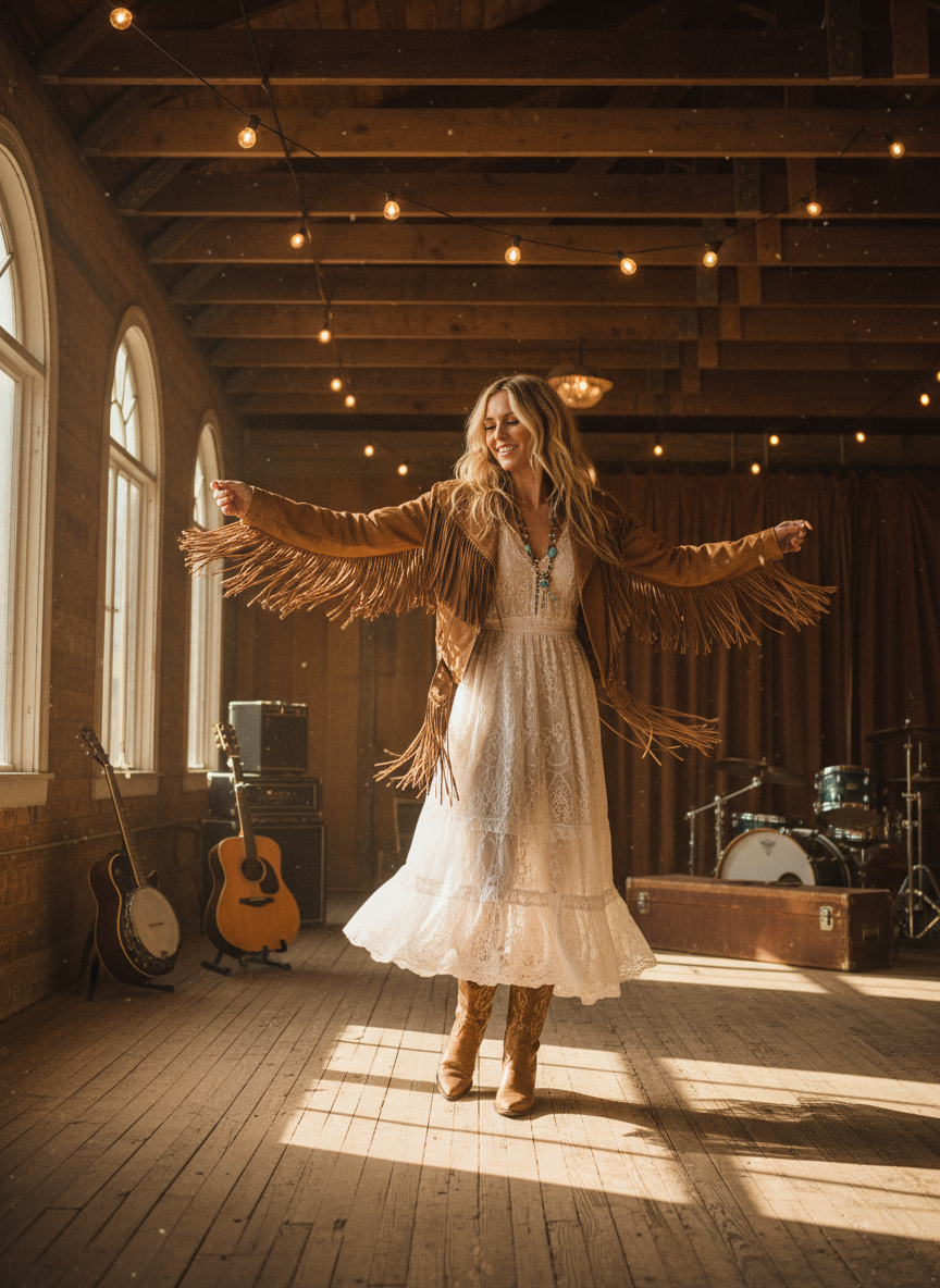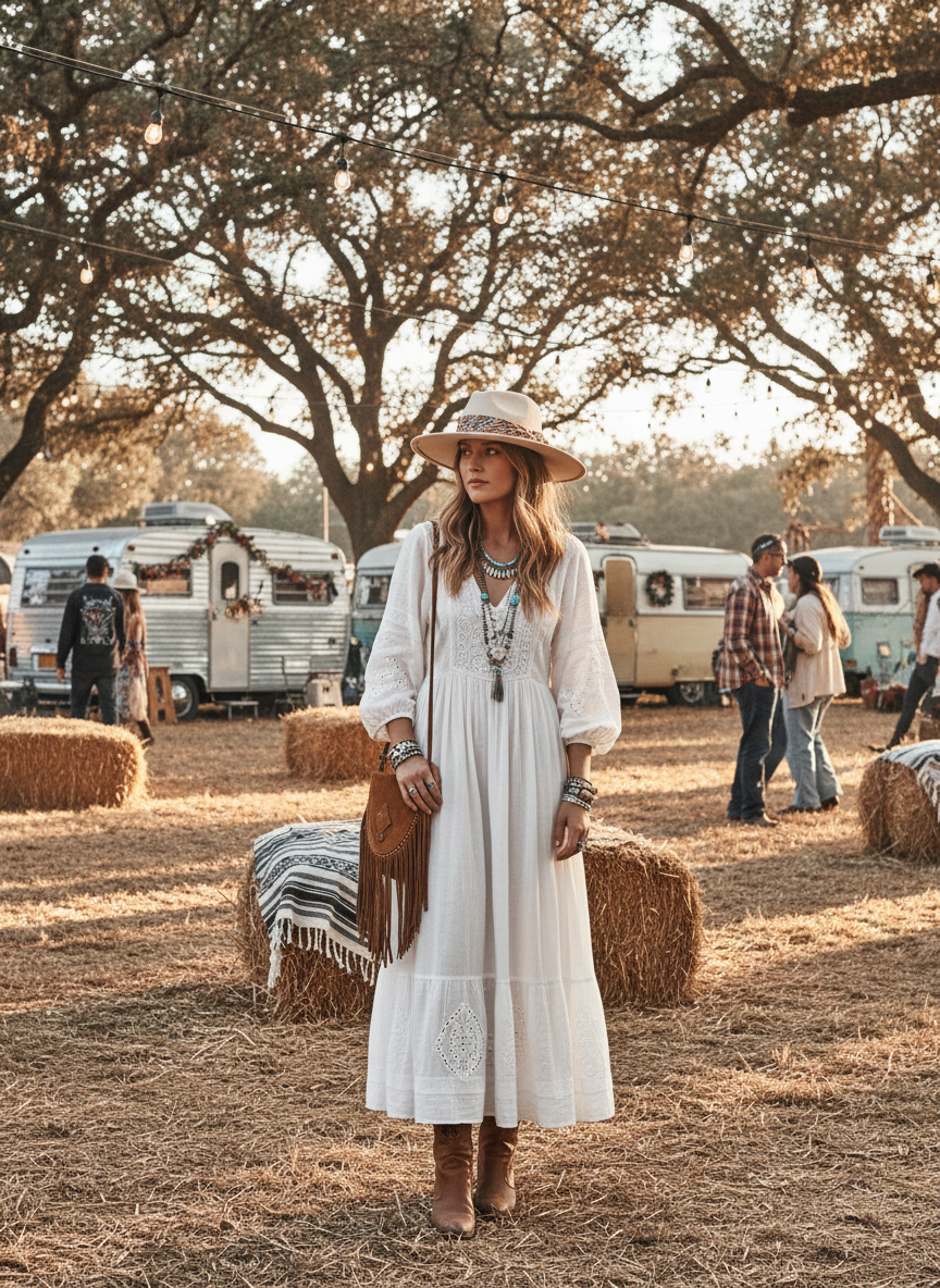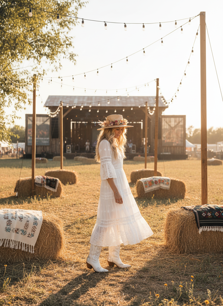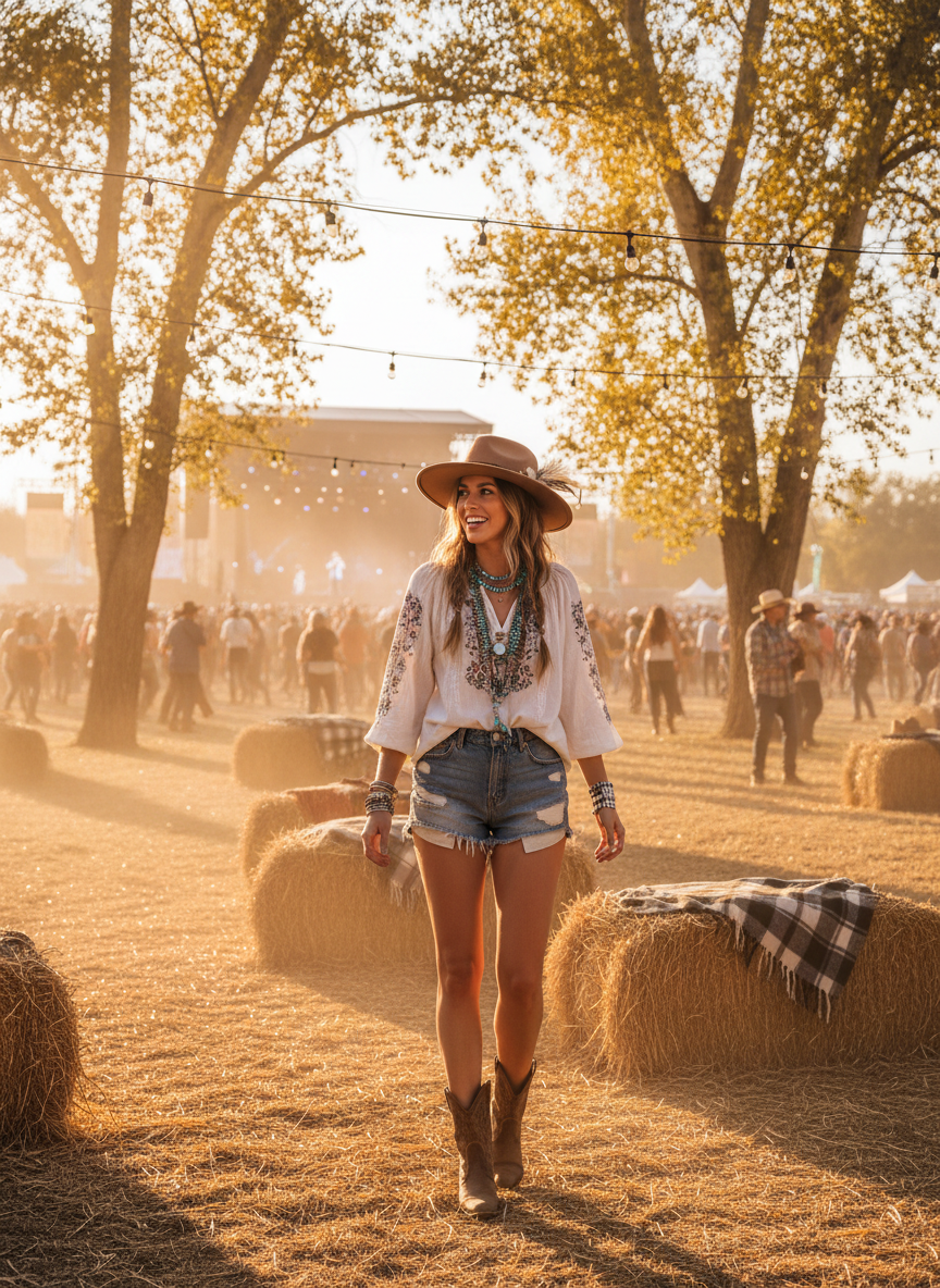 No country concert look is complete without a great hat. A wide brim felt or straw hat frames your face and adds a mysterious touch. It also protects you from the sun if you are at an outdoor festival during the day. Stick to neutral shades like beige or chocolate brown. This accessory pulls the whole vibe together effortlessly.