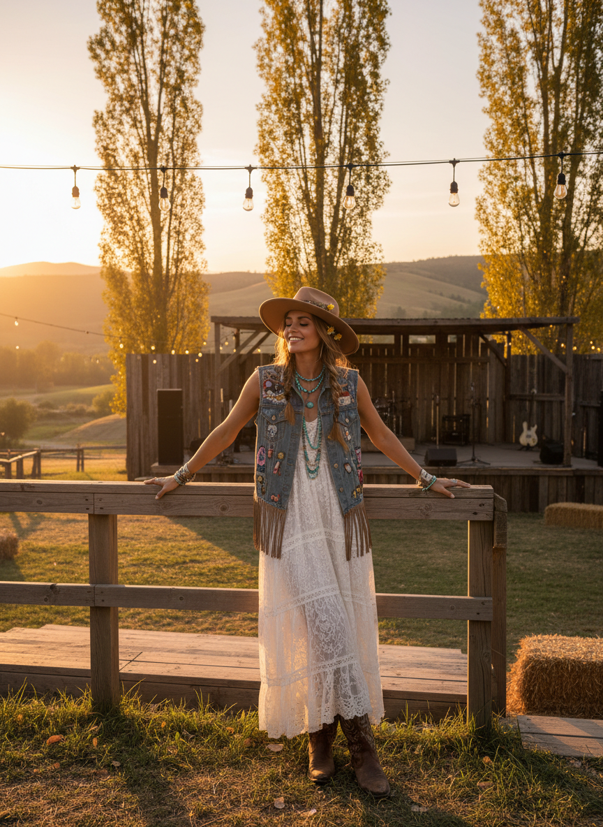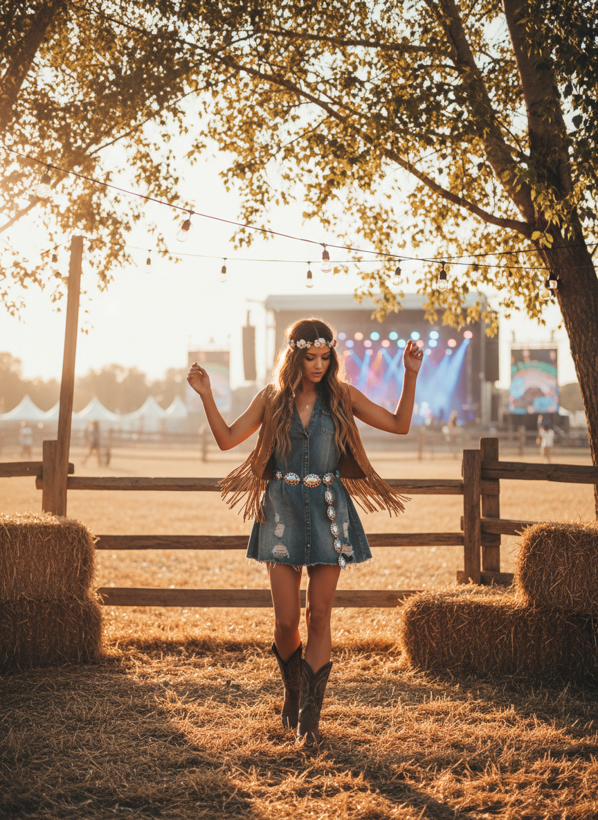 Layering is huge right now and a denim vest is the best way to do it. You can throw it over a simple white tee or a flowy sundress to add some edge. It gives you that rugged country vibe without making you overheat in a crowded venue. Try finding one with a slightly oversized fit for a relaxed look. You can even customize it with pins or patches to make it totally unique to your style.