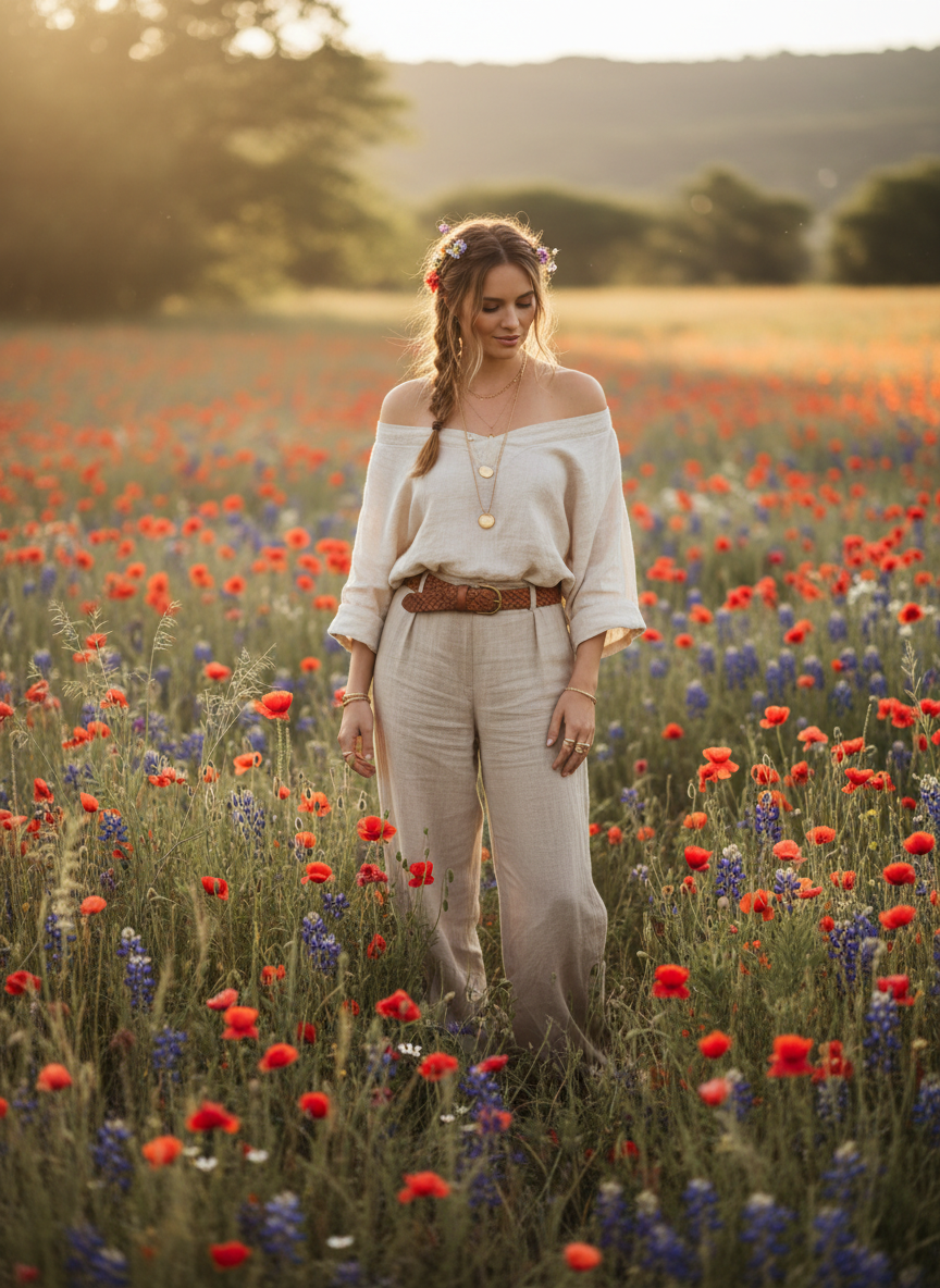 Linen pants are incredibly breathable and look so chic for an outdoor adventure. A crisp white pair stands out beautifully against bright red poppies or bluebonnets.
