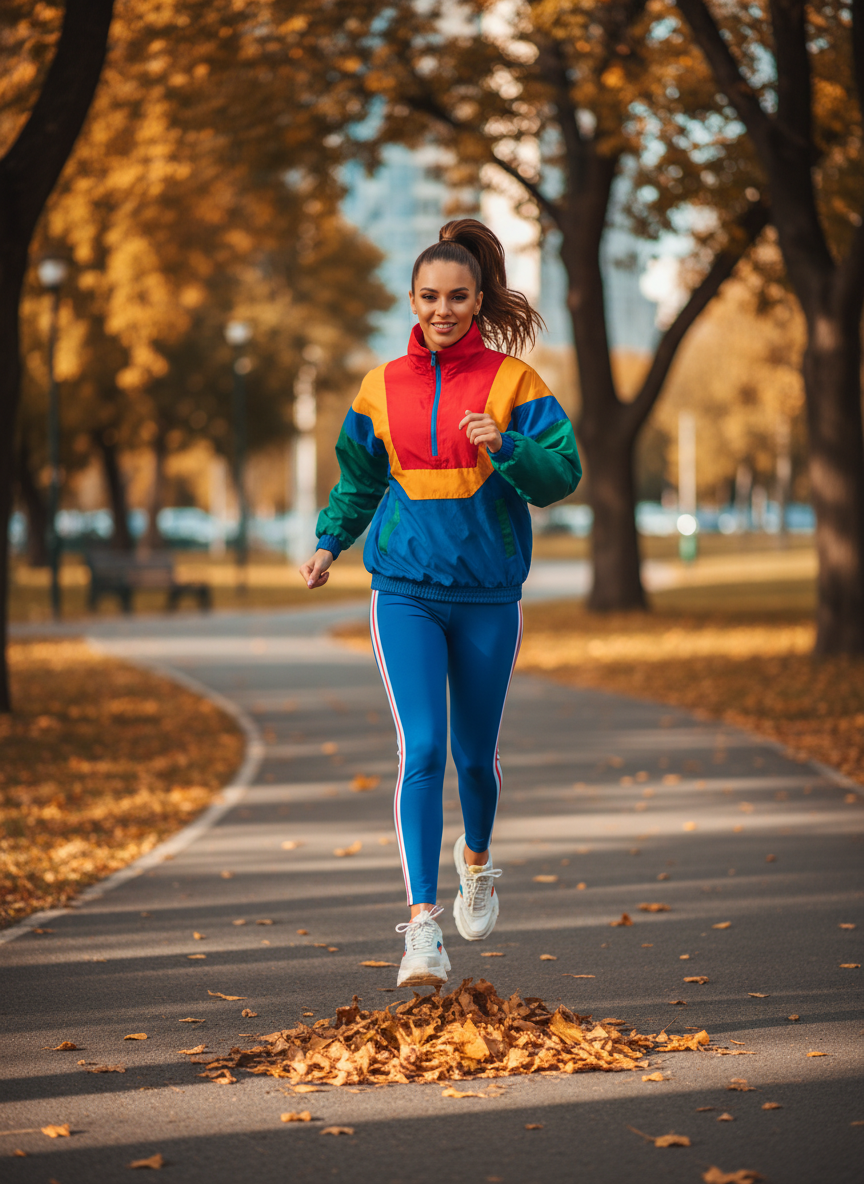 A lightweight windbreaker adds a retro vibe to your gym fit. Color blocking with bright neons or primary colors makes a statement. It is perfect for outdoor runs or chilly gym air conditioning. Tie it around your waist when you get too hot.