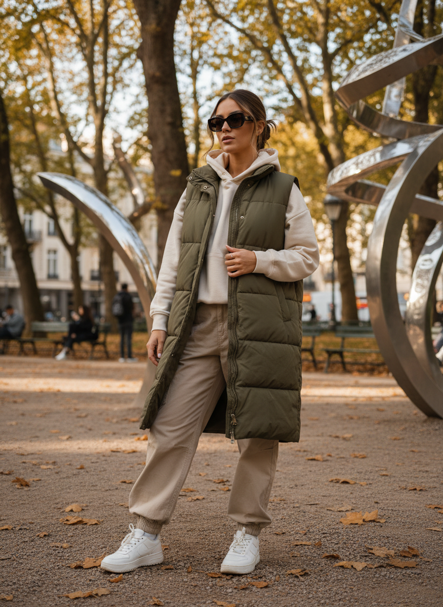 13 Stylish Long Puffer Vest Outfits for Women with Street Vibes