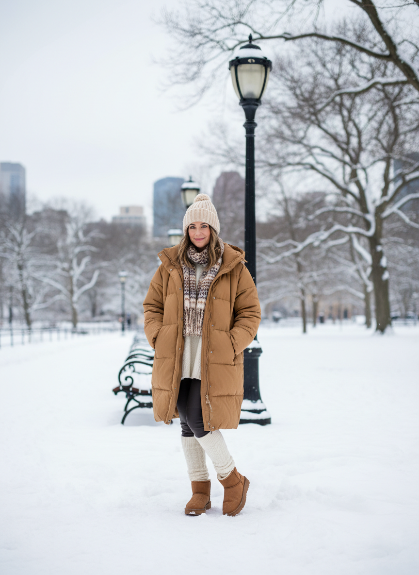 Comfort is king during the winter months. These popular boots match the cozy energy of the coat. It feels like wearing slippers outside. The extra height on the boots keeps your hem off the ground. This is the ultimate comfort outfit.