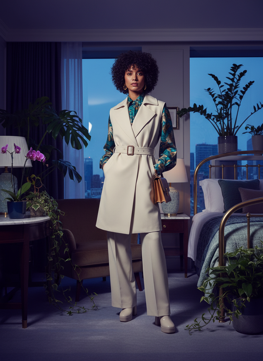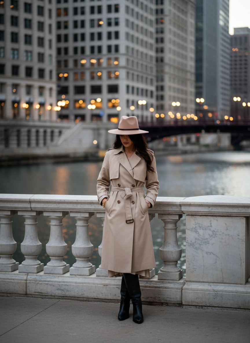 This is a great option for warmer days or layering. A sleeveless trench or long vest gives you the trench look without the bulk on your arms. It creates long vertical lines that are super flattering. You can wear a fitted long-sleeve top underneath. It creates a very chic and polished appearance.