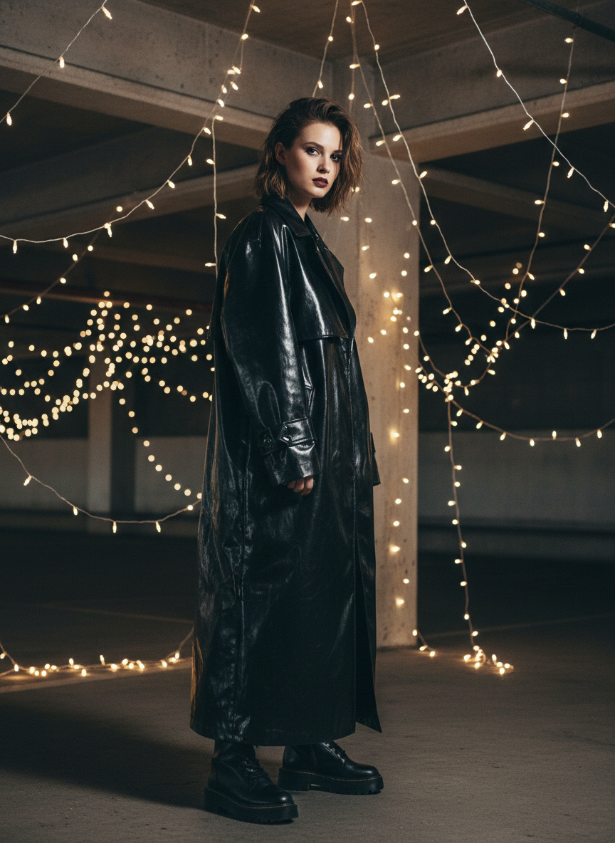 Make a bold statement with a glossy vinyl trench. The shine reflects light and draws attention to your outfit. It is also super practical for rainy days since the water slides right off. Keep the fit tailored so the shiny material does not overtake you. It looks incredibly cool with chunky boots and dark sunglasses.