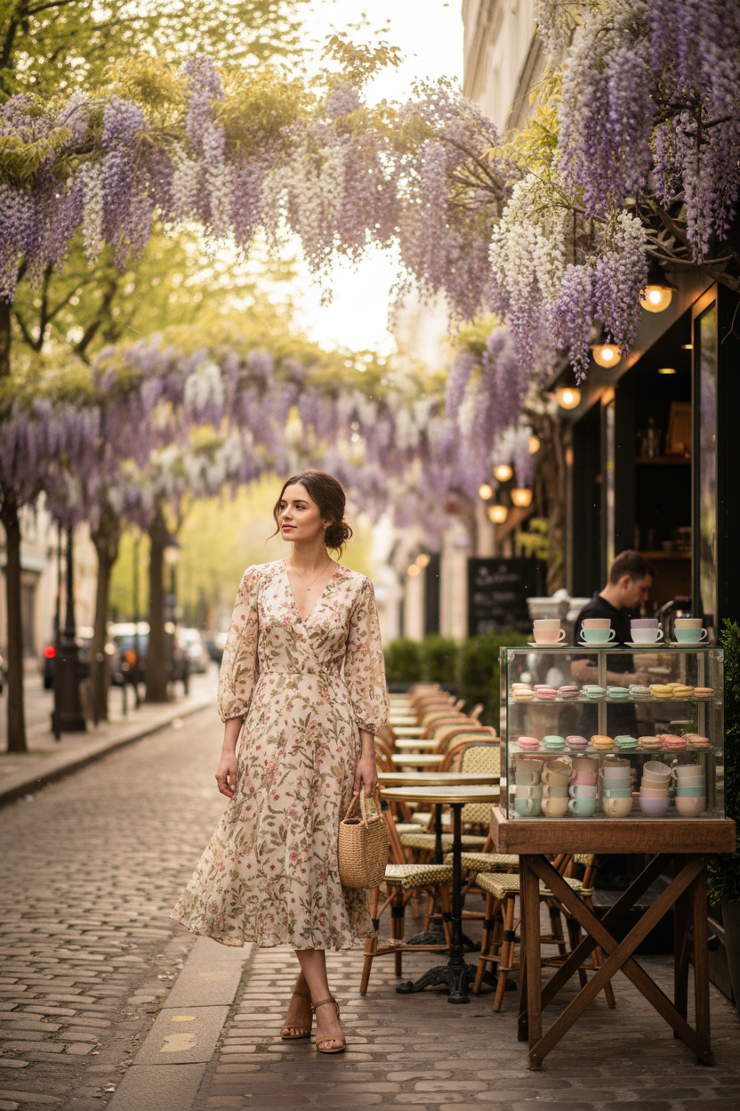A floral midi dress is a classic choice for any weekend morning. This spring brunch looks amazing with white sneakers or small heels. It feels light and moves with you as you walk to the cafe. You can add a denim jacket if it is still a bit chilly outside.
