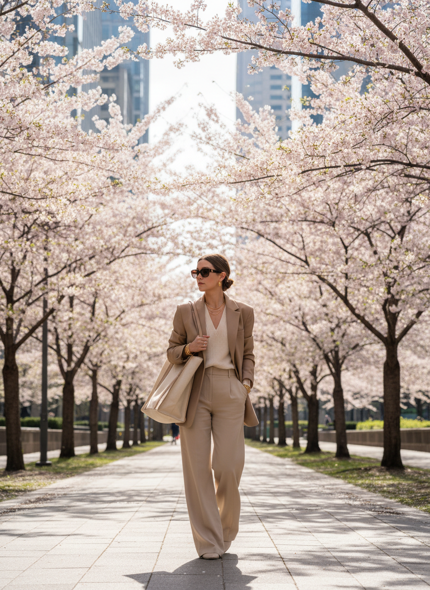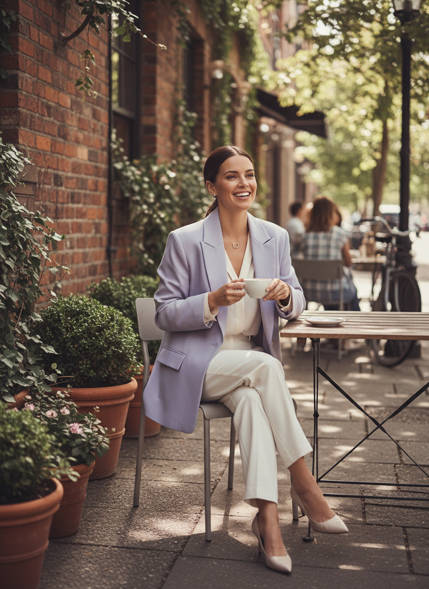 Matching sets make getting dressed in the morning incredibly fast. A monochrome suit in a soft color like sage or lilac looks so chic. You look like you really have your life together when you wear this. It is a power move that still feels feminine and soft.