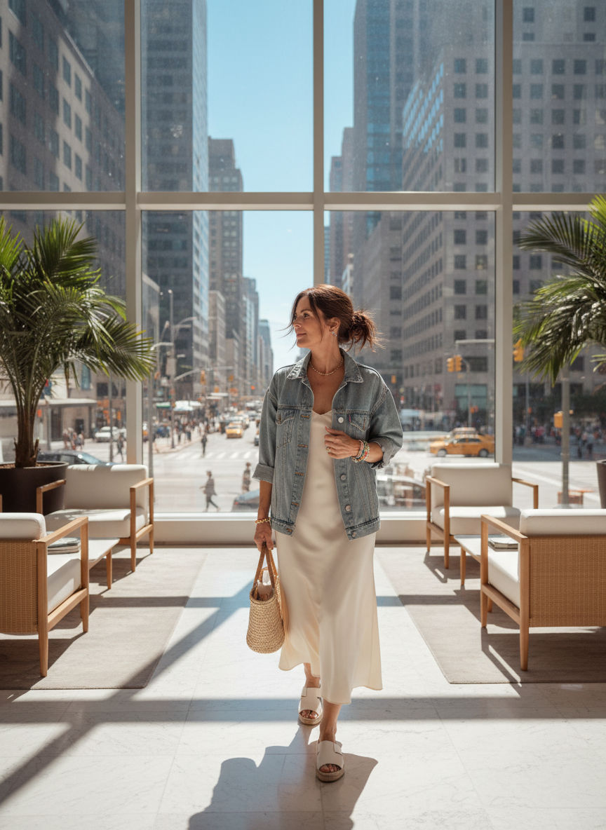 1.Midi Slip Dress with Denim Jacket
