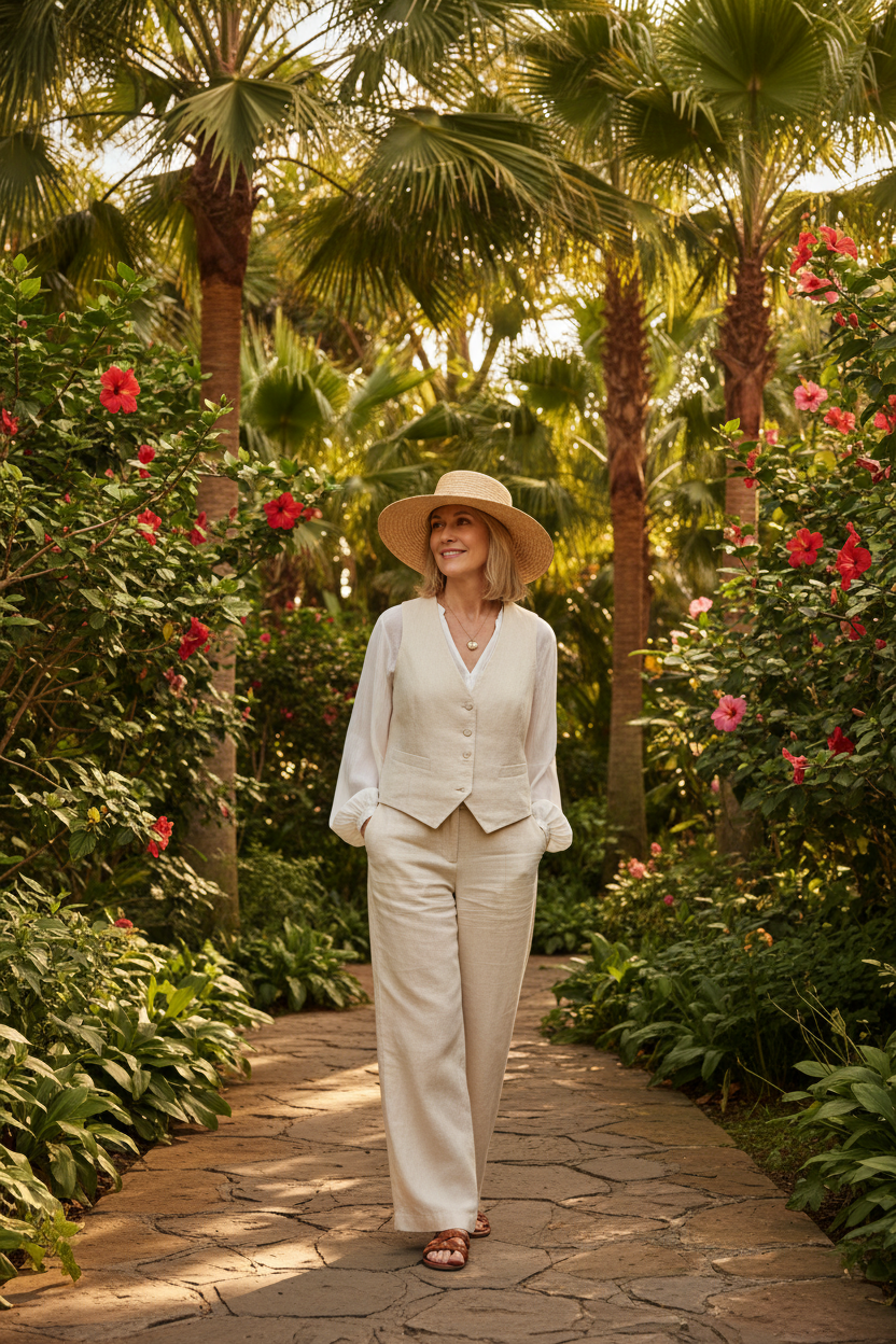 A linen vest paired with matching pants makes for a very polished summer birthday outfit. This material is very breathable which is essential for any outdoor parties.