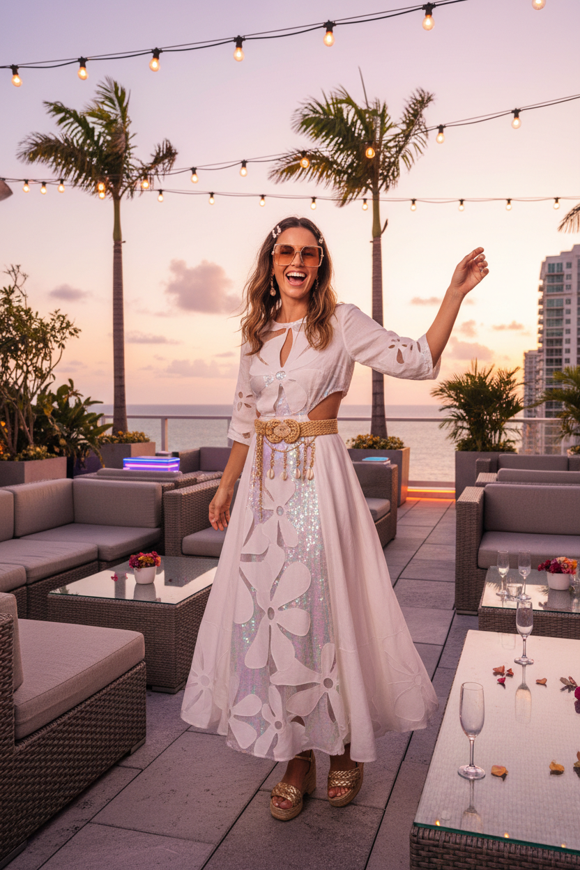 A crochet summer birthday outfit is a very trendy and relaxed option for a pool party. You can wear a crochet dress over your favorite swimsuit or find a lined version for dinner. The texture of the knit adds a lot of visual interest to your look. It feels very bohemian and matches the summer energy perfectly.