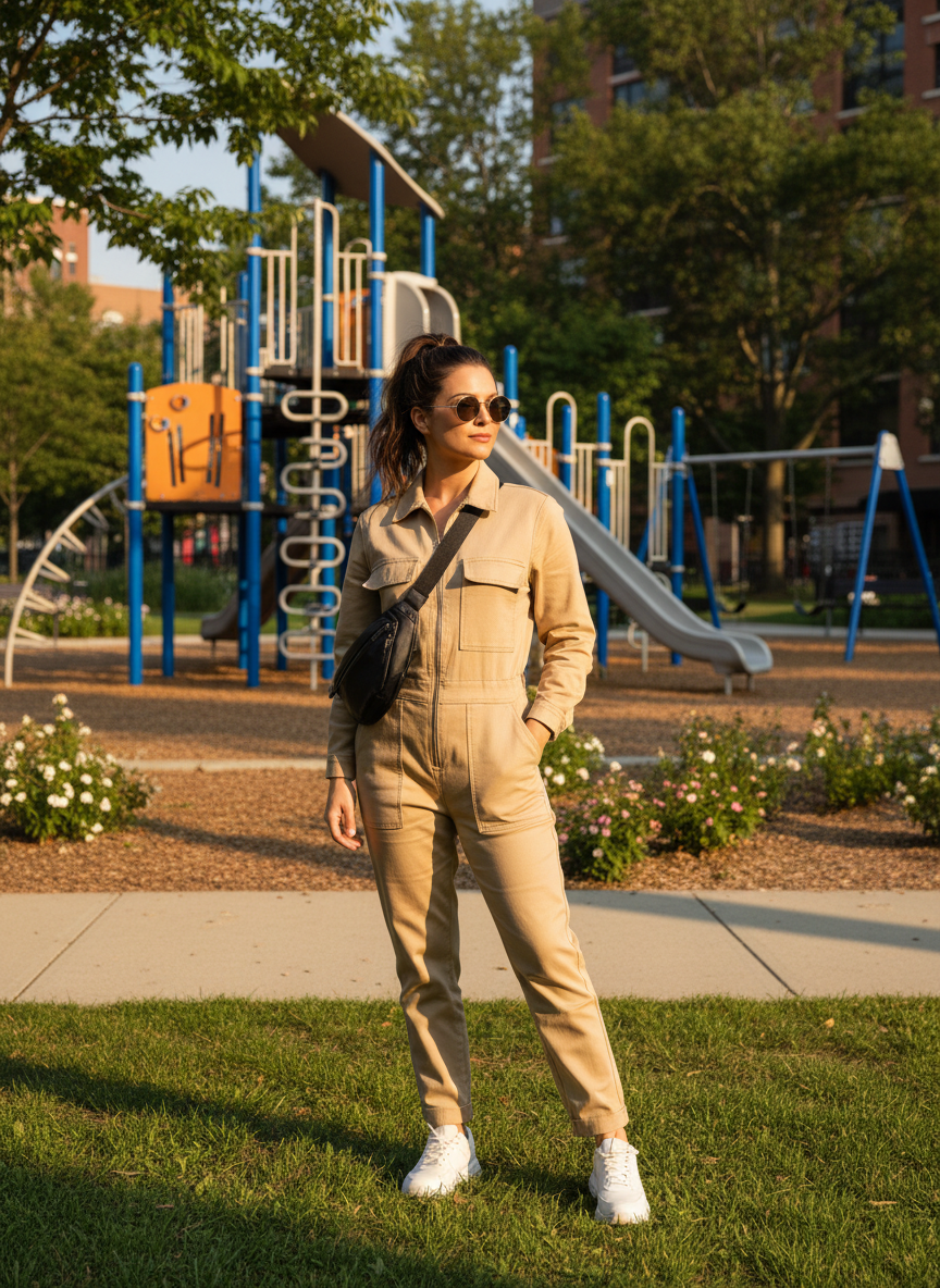 A utility romper gives you plenty of pockets for snacks and pacifiers. The structure looks sharp but the fit is relaxed enough for playing. It is a modern take on casual wear that feels very cool. You can wear this with sandals or flats for a day at the park.